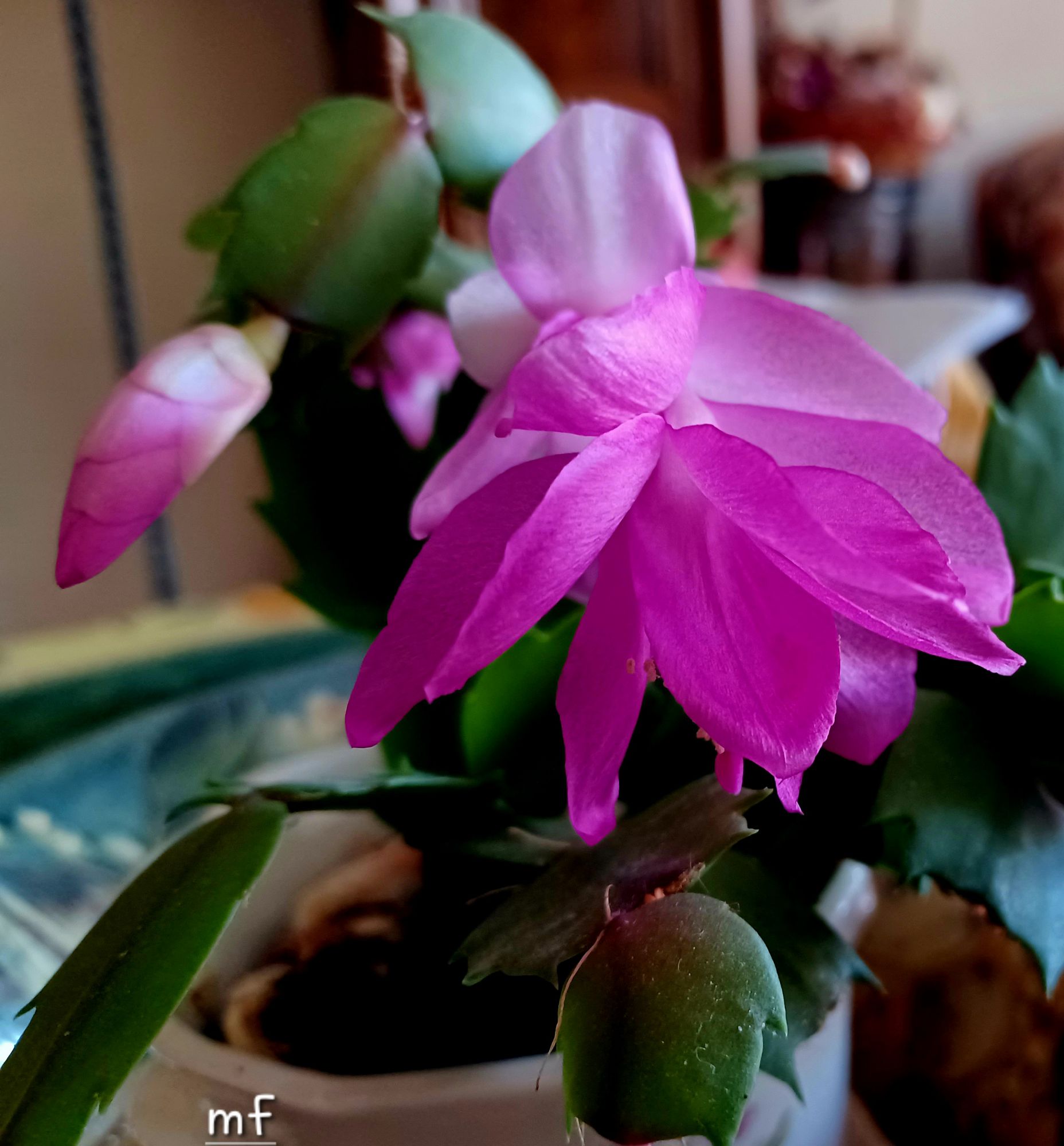 Celui qui est dans ma vitrine à l’atelier fleurit aussi depuis une semaine 😀